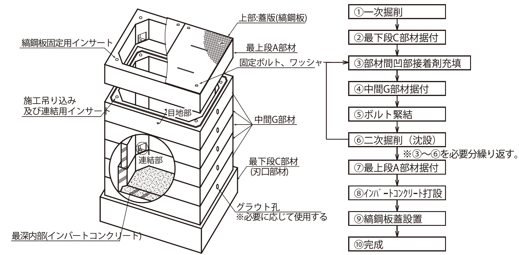 施工手順(沈設工法タイプ)