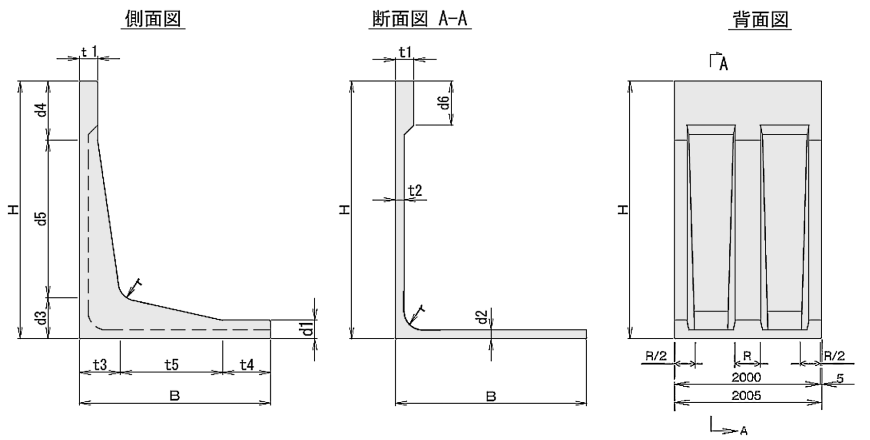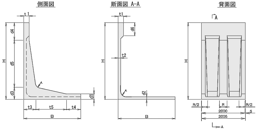 ※1 呼び名の「兼」は直近上位の擁壁の型枠を兼用する場合を示します。