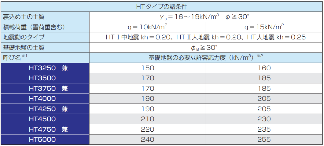 HTタイプ(比較的良質地盤:裏込め土の内部摩擦角φ≧30°)