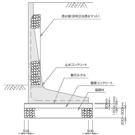 ③透水層の下部には止水コンクリートを設置してください。