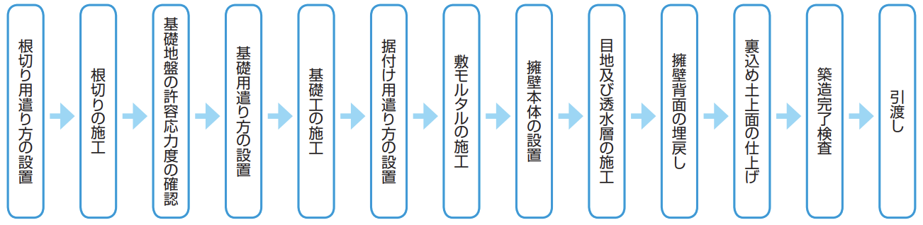 ハイ・タッチウォールは、重量構造物です。したがって、擁壁背面及び基礎地盤の土質条件により、施工方法が異なりますので、 以下の事項に注意し確認してください。