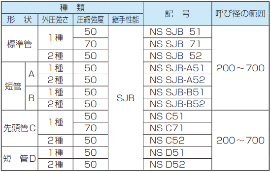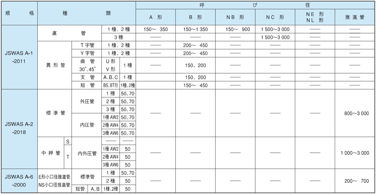 ※2 JSWAS A-6に登録された形状については、継手性能区分を示すSJBを表示します。