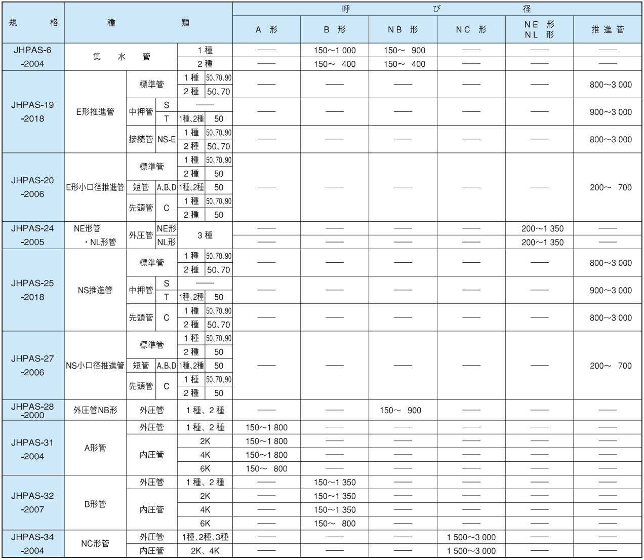 ※呼び径900は、JHPAS-19です。