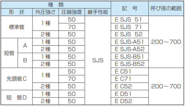 ※2 JSWAS A-6に登録された形状については、継手性能区分を示すSJS を表示します。