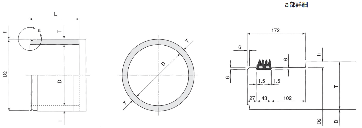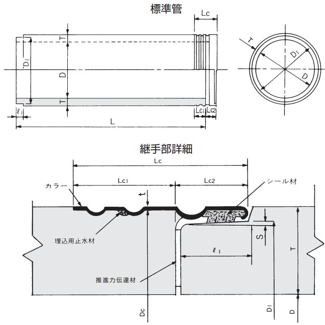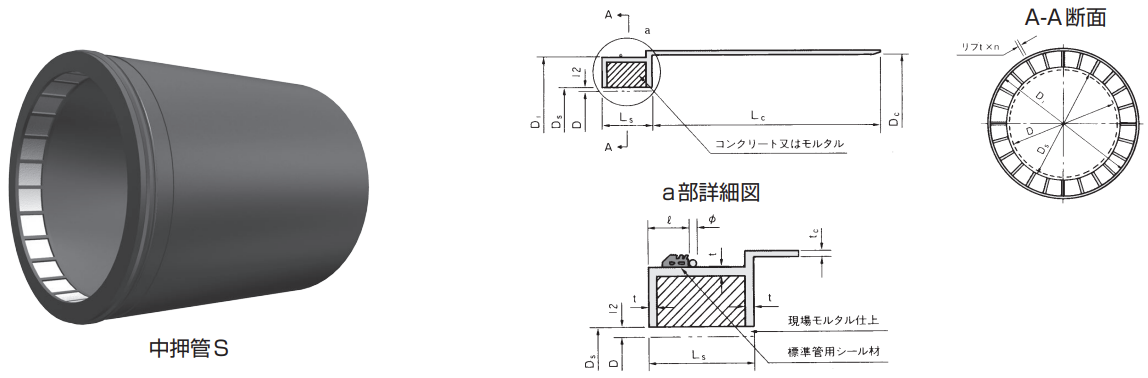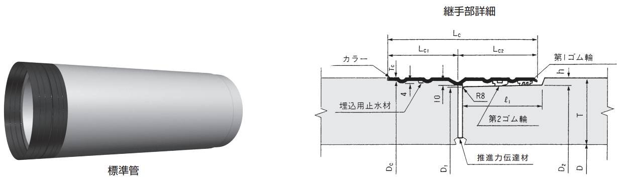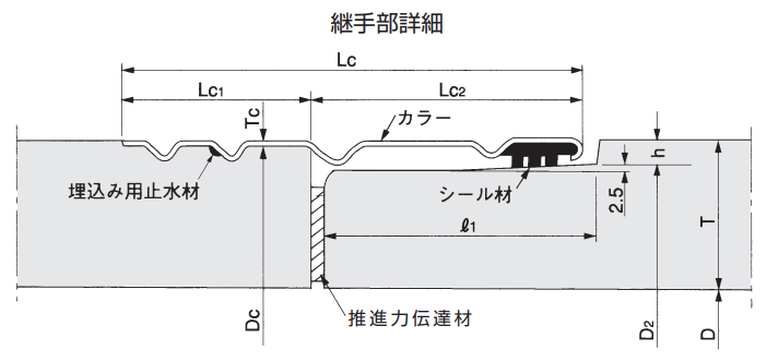 C形より管の厚さを増し、抜け出しの性能を向上させたもので、シール材を用いて接合します。