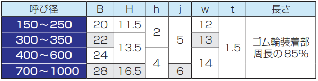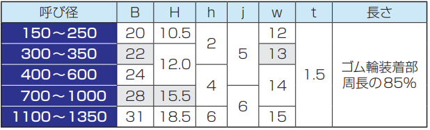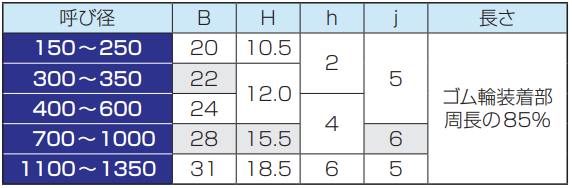 ● B形及びNB形用水膨張性ゴム輪