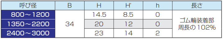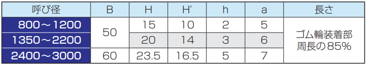 ※呼び径1500〜1800の管の有効長は1080mmとすることができます。