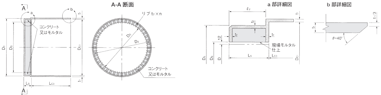 ※3 呼び径1000以上の標準管には、緊結用埋込みナットをつけることができます。