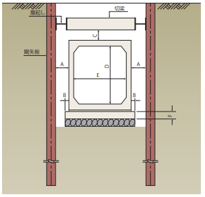 コンクリート製品と仮設とのクリアランスが100mmで施工が可能なため、仮設工および土工が縮減でき経済的です。