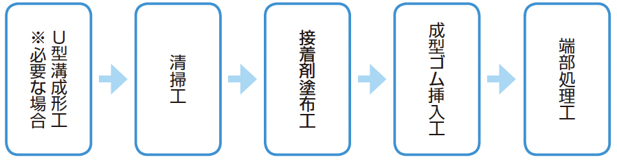 成型ゴム挿入(直角部:90°についても一本物施工可)