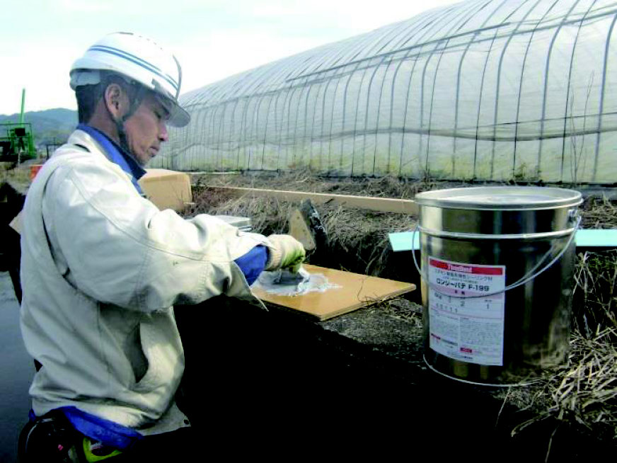 ❷ 湿潤面対応型弾性エポキシ樹脂を使用するため、湿潤接着性に優れます。