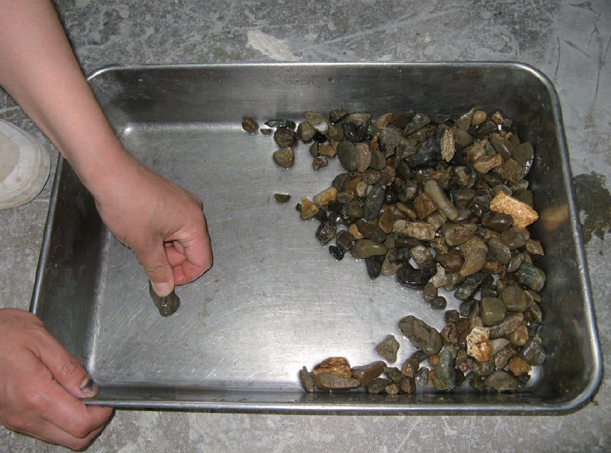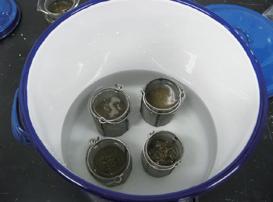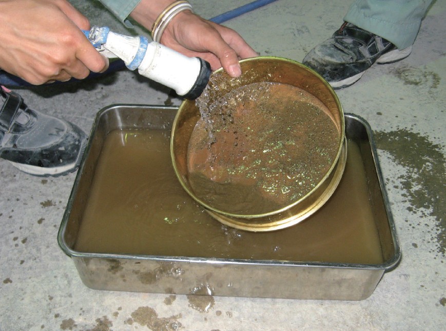 0.075mm以下の微粒分を洗い流し、その損失量から微粒分量を確認