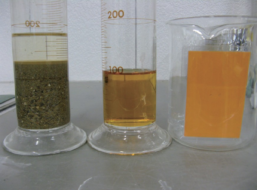 24時間吸水させた試料から、軟化して指で砕くことができる粘土塊の量を測定