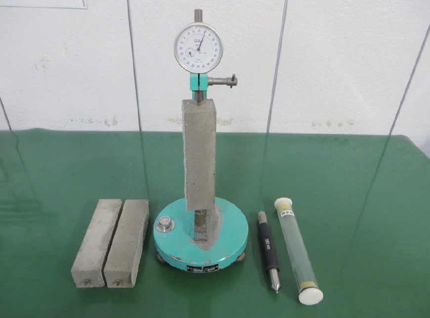 アルカリ骨材反応を促進させたモルタルバーの長さ変化を測定