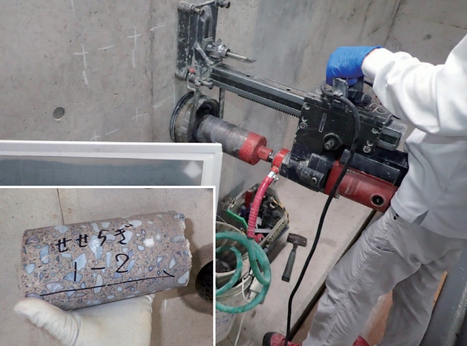 建屋の壁からφ80~100mm程度の強度試験用コア試験体を採取