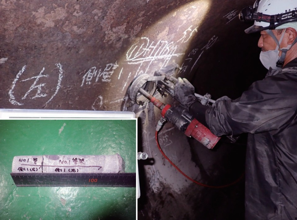管渠からのφ25mm程度の強度試験用コア試験体を採取