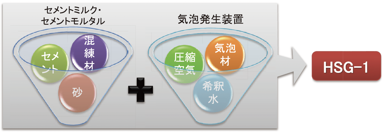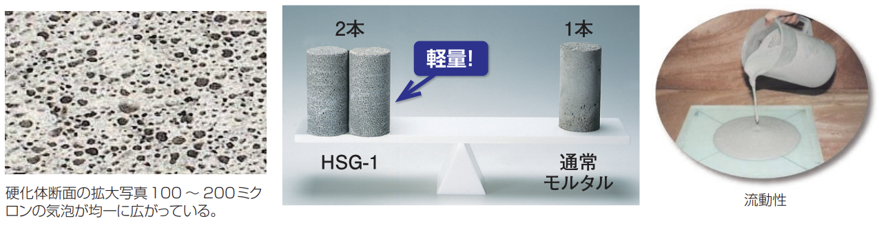 ❶ 気泡の混合物を変更することにより、単位体積重量の調整範囲が広がります。(比重:0.6 ~ 1.4まで調整可能)
