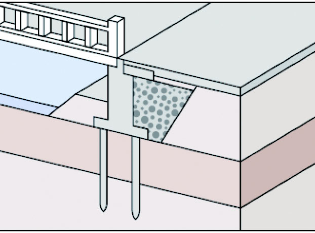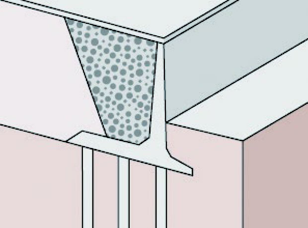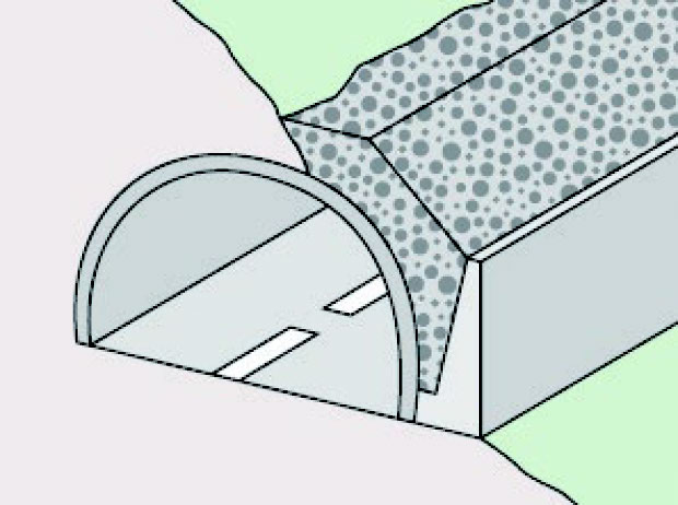 ❷ 充填材が無収縮性・流動性に優れるため、頂版との間に隙間ができず、頂版陥没対策として有効です。