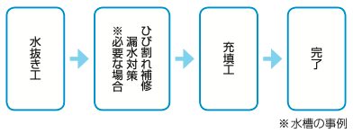 ❹ 短期間の施工(40m 3 級水槽で2日施工)が可能で、大幅な作業スペースも必要なく、通行規制を軽減できます。