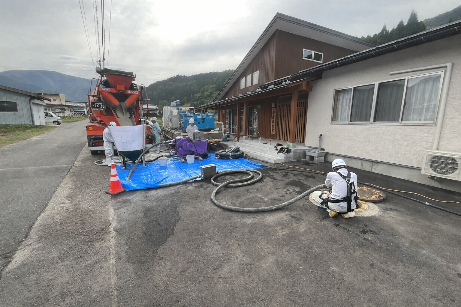 ❷ 流動性が高いため、ポンプ圧送性も良好で施工性が良く、非常に小さな空隙にも充填可能です。