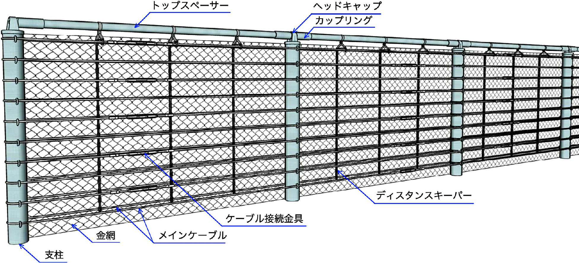 部材構成がシンプルであり、メインケーブルは着脱が可能であるため部分開放等でメンテナンスを行えます。また、ディスタンスキーパーは追随性が高く、残留変形を起こさないことから、土砂等を取り除いた後も再利用が可能です。