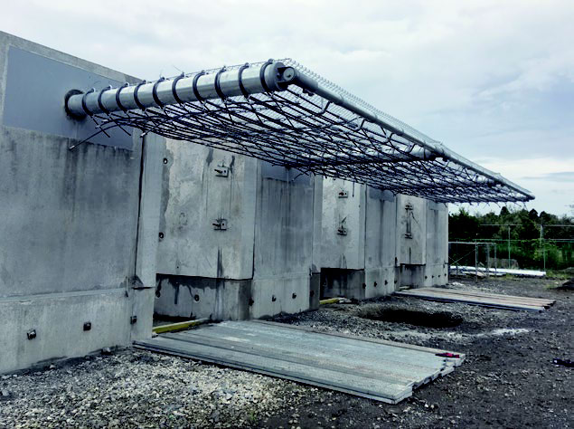 ワイヤロープがループ状に巻きつけられているため、単線に比べて同量のワイヤロープのスリップが生じても張出し量を低減でき、道路際にも設置が可能です。