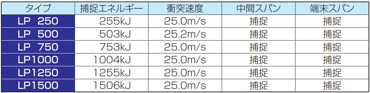 250 ~ 1500kJクラスの落石エネルギーに対応した最適なタイプを選ぶことができます。また積雪地域でも対応可能です。