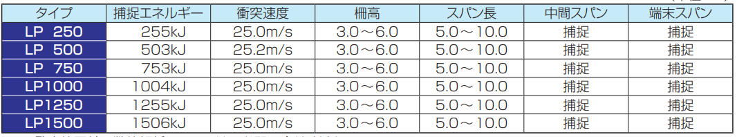 250 ~ 1500kJクラスの落石エネルギーに対応した最適なタイプを選ぶことができます。また積雪地域でも対応可能です。