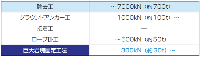 ● 主な対策工と対応可能重量(目安)