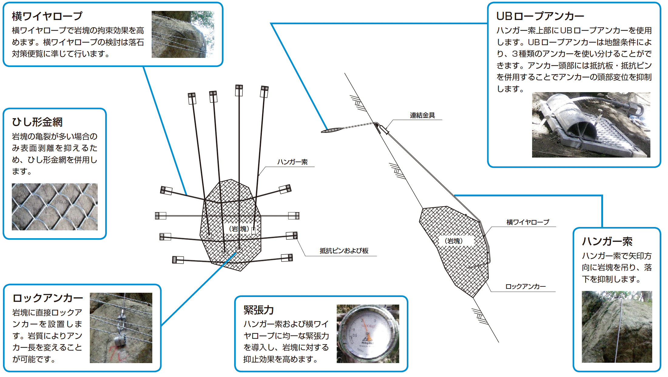 従来の数十倍の岩塊落下、岩盤の崩落の防止を実現しました。