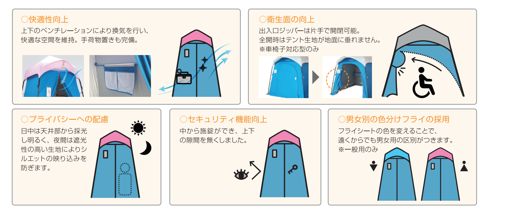 テントタイプは導入コストが安価なため、対策の早期実現に加え、大型避難所での複数基備蓄にも最適です。