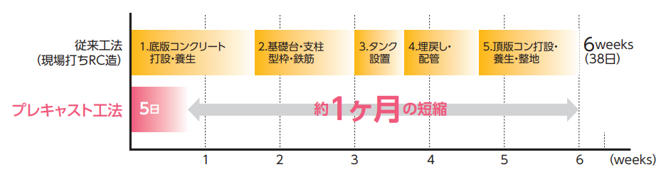 プレキャスト化により工期の大幅な短縮が可能となります。建築工事全 体の工程計画が非常に容易になります。