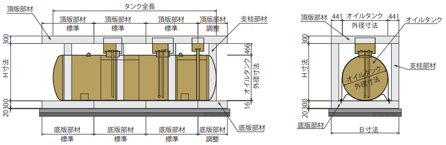 国交省の公共建築工事標準図記載のオイルタンク規格10kL〜30kL に対応可能です。