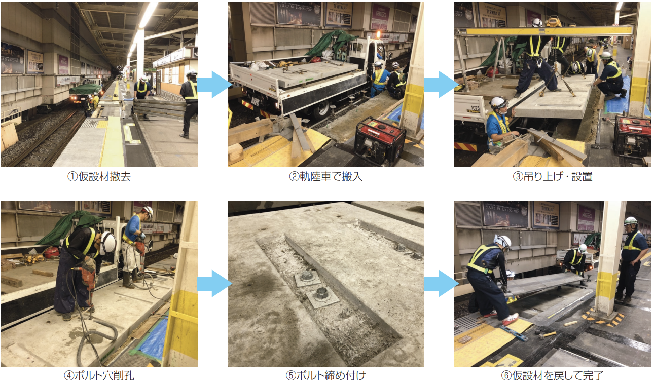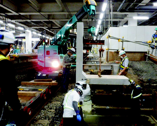 現場打ちと比べ天候に左右されず、短時間での工事が可能です。 終電後、始発までの限られた夜間施工でプレキャストの特長が活かされます。