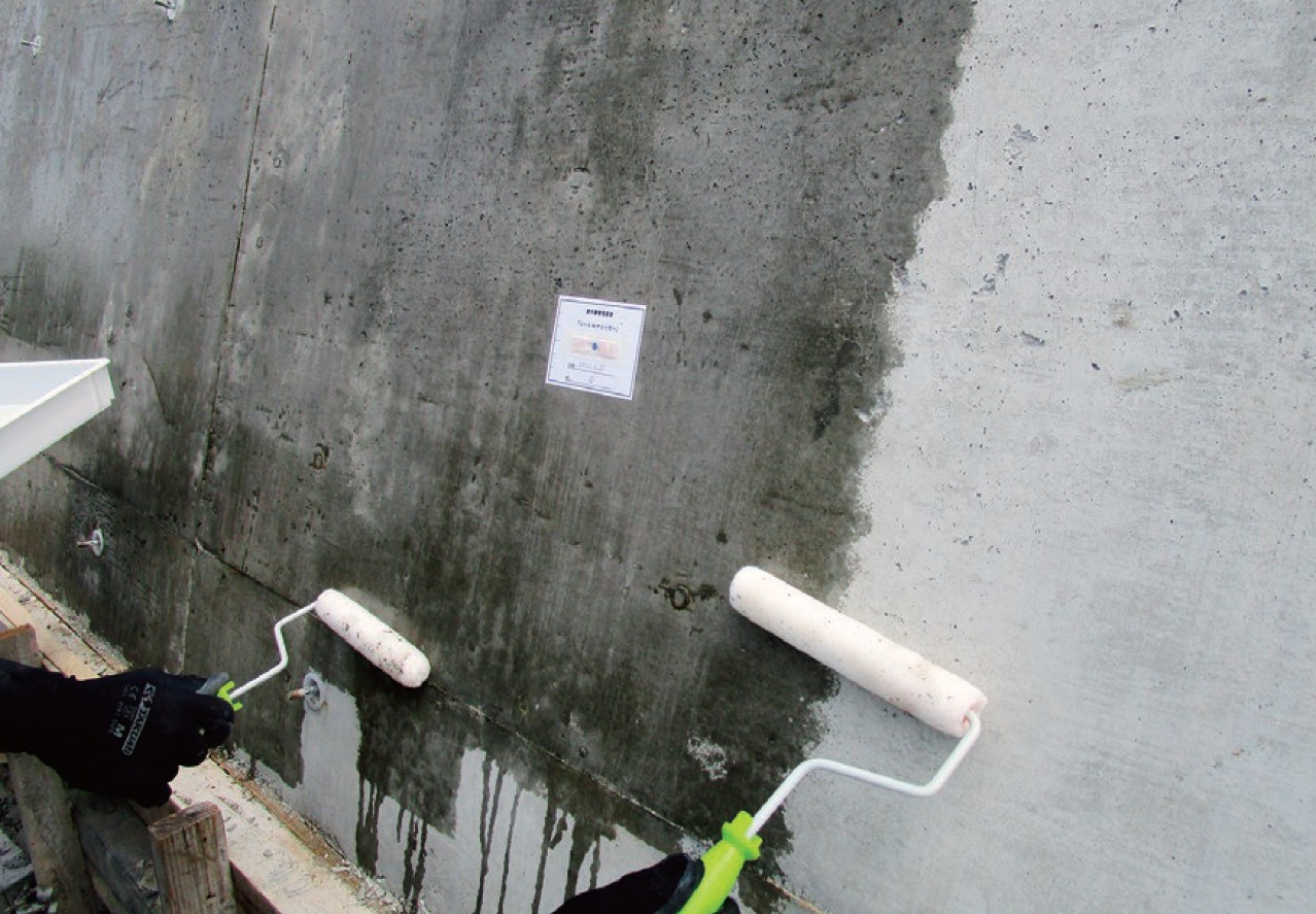 1液であり塗布作業が容易です。また、撥水効果により施工確認が容易です。(材料:燃焼性なし・無臭)