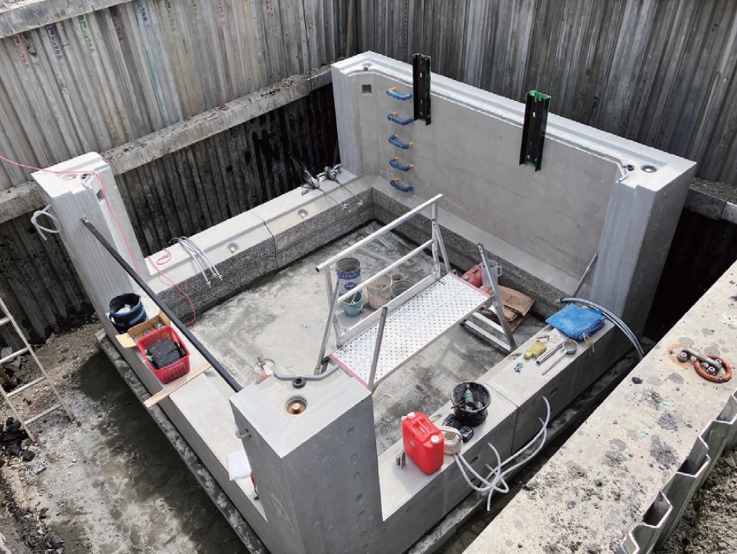 部材を基礎ブロックからマンホール蓋まで順次組み上げるだけですので、熟練工を必要とせず現場施工が簡単です。