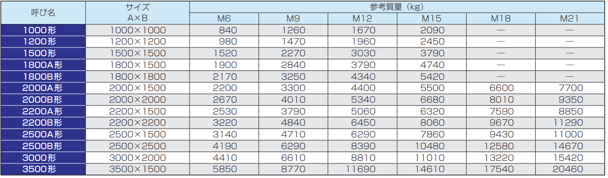 現場のニーズに対応出来るよう、サイズは1000mm×1000mmから3500mm×1500mmまで13種類の規格化をしました。