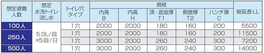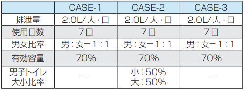 ● 標準的な容量設定条件による規格であり、目安となる一例です。この他、敷地制限などによるご要望に応じた設定が可能です。