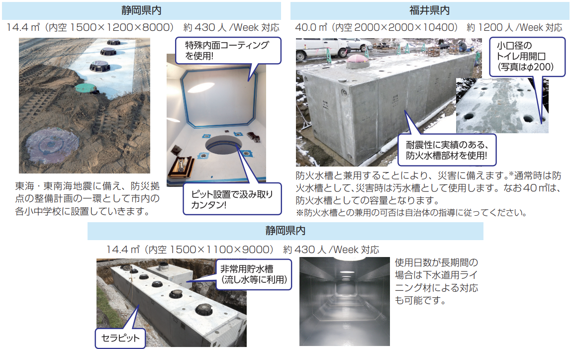 過去の震災に耐えた防火水槽・耐震性貯水槽技術を活用し、災害直後でも、安心してご使用いただけます。