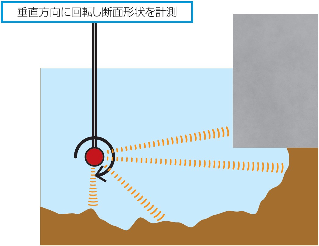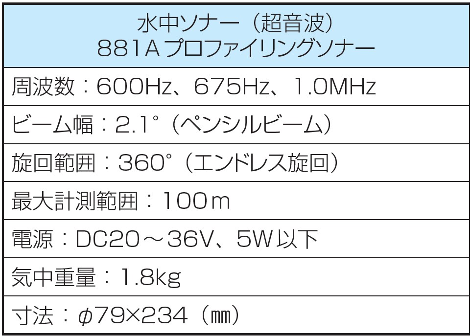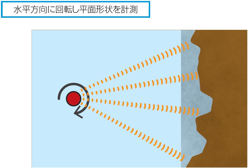 ビーム幅の狭いペンシルビームにより、対象物の寸法や形状を精度よく計測することができます。360度回転するソナーヘッドで広範囲をスキャンします。