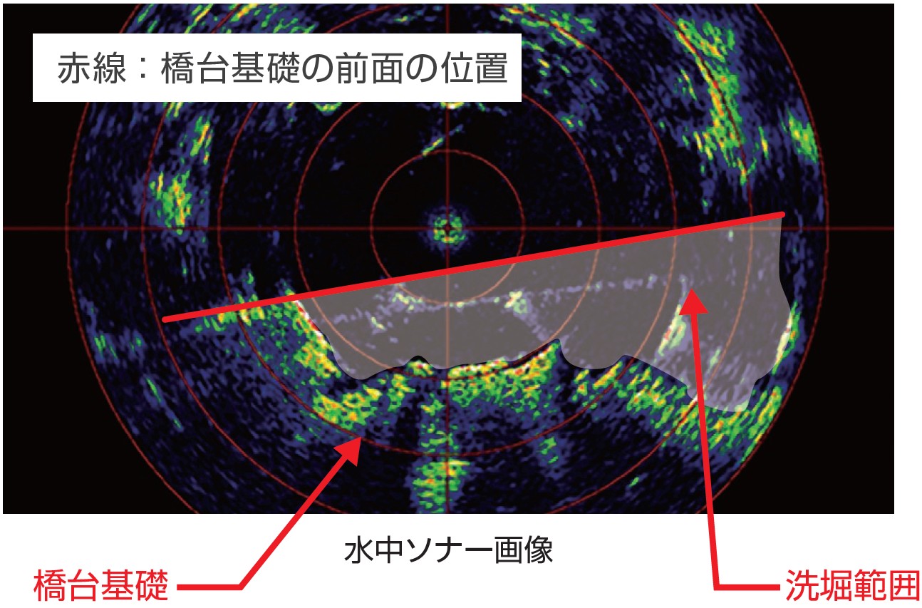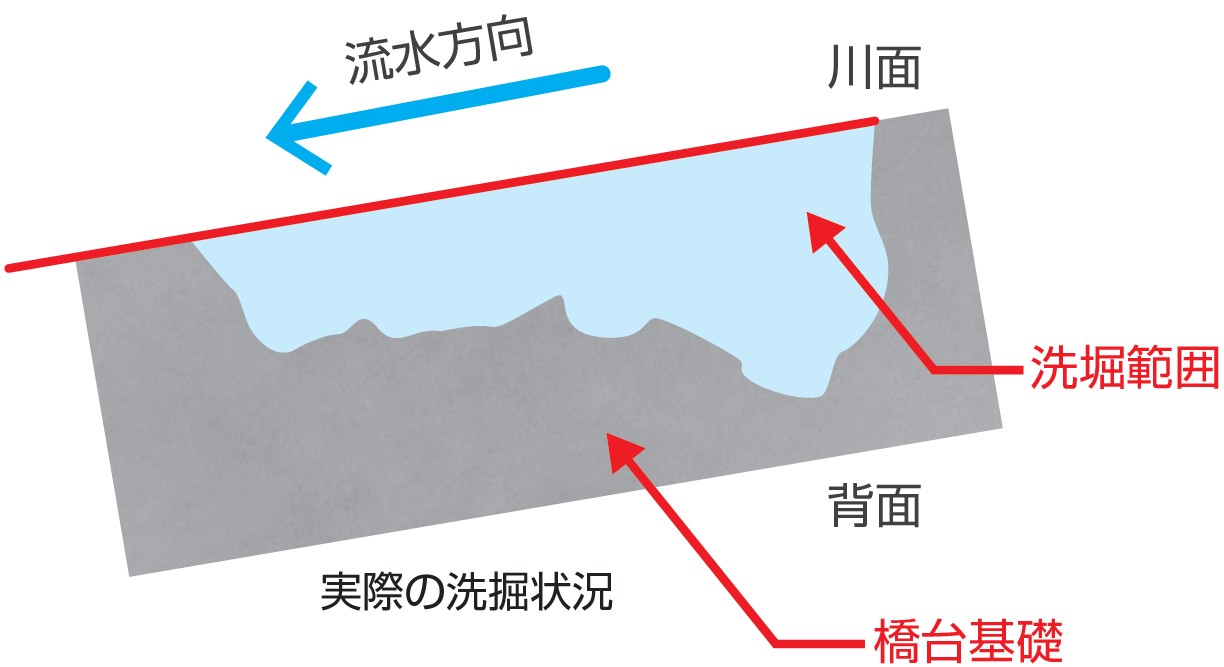 ●直接計測ができない橋台基礎の下の洗堀範囲(水平方向)を確認