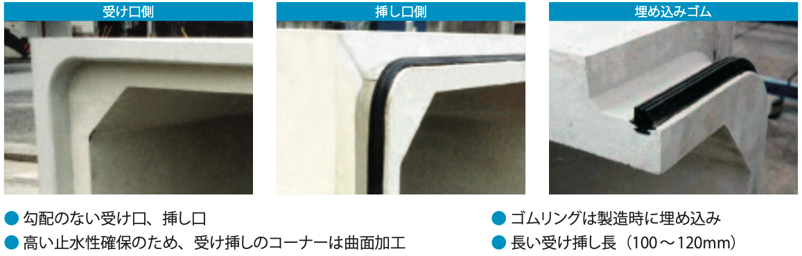 埋め込みゴムの圧密で止水性を確保しており、製品を接合するだけですぐに埋め戻しができ、施工性が非常に優れています。