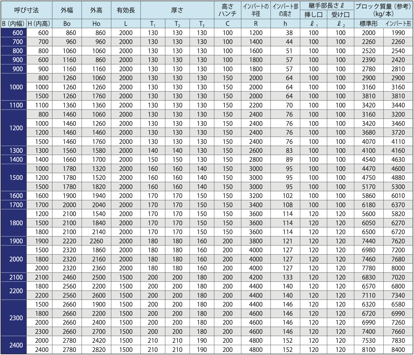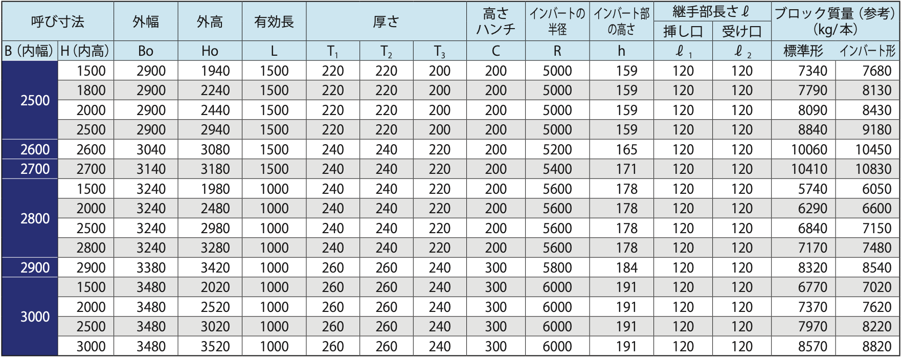 1)ボックスカルバートは断面形状により、標準形とインバート形に区分されます。