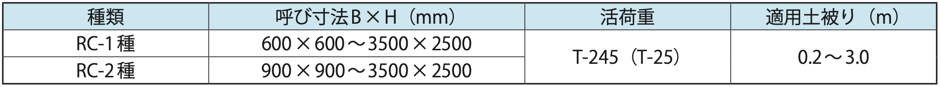 RCボックスカルバートは外圧強さにより、1種製品と2種製品が区分されております。