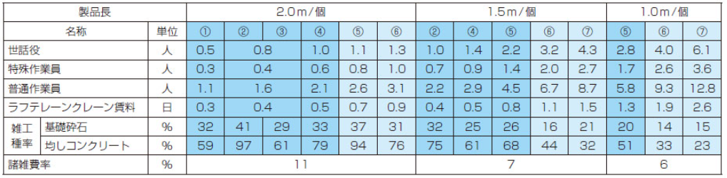 ※7本歩掛には、均しコンクリート型枠施工時の剥離材塗布およびケレン作業を含みます。