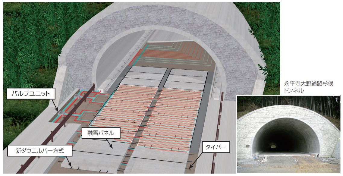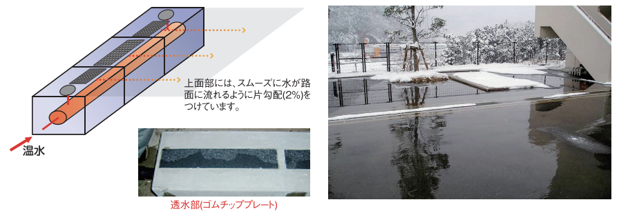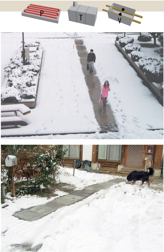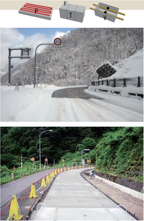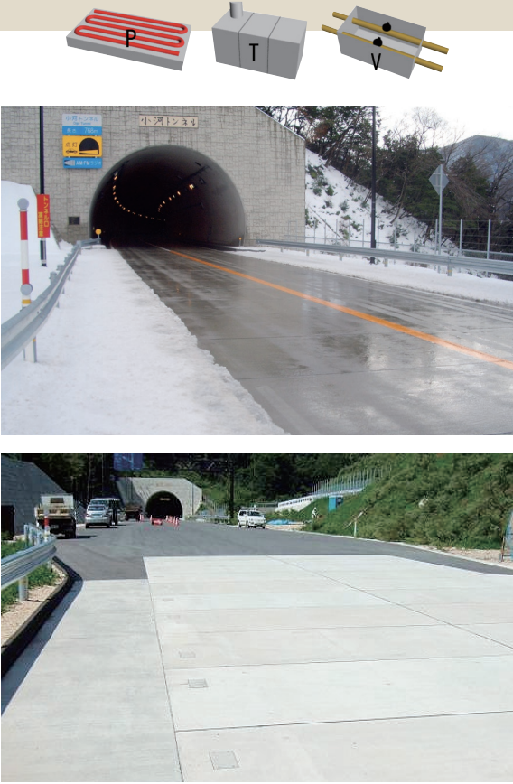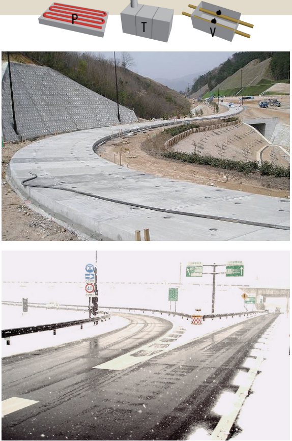 用途:トンネル抗口の融雪および凍結防止、通学路、駅前広場、商店街等の冬期歩行空間の安全確保