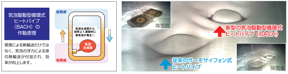 ❷ 新型の気泡駆動型循環式ヒートパイプ(B バッハ ACH)により、熱輸送効率が向上しました。