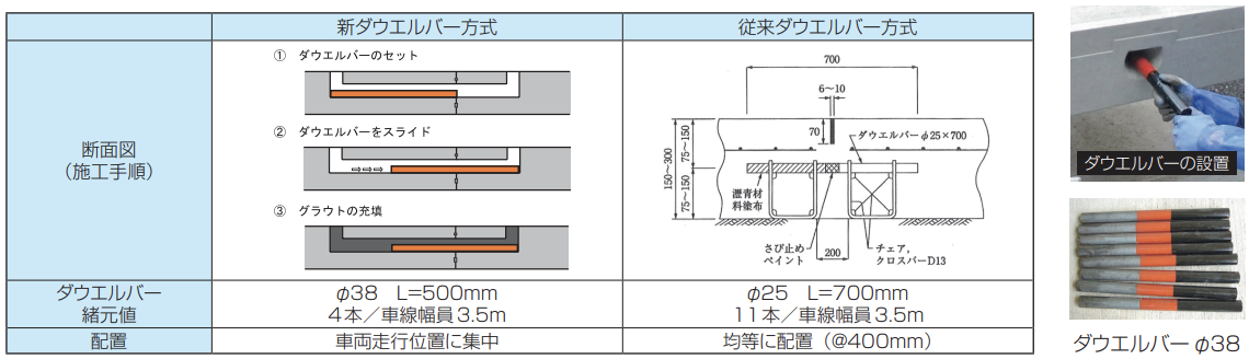 ❷ 車道用は合理的な「新ダウエルバー方式」を採用