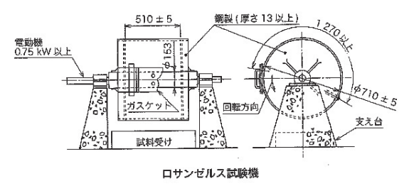❶ :骨材のすりへり試験(JIS A 1211 ロサンゼルス試験機による粗骨材の磨り減り試験)
