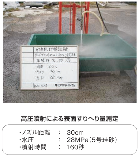 ❷ :サンドブラストによるコンクリートすりへり量試験